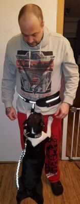 * mit Handschlaufe, so auch zum normalen Führen des Hundes geeignet