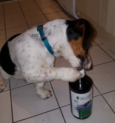 Der Hund kann problemlos mit Schwarzkümmelöl eingerieben werden.